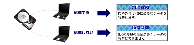 HDD内のファイルを認識可能であれば、これを「論理故障」と呼びます。あとはお客様で用意したPCや外付けHDDなどに必要なデータを移管します。